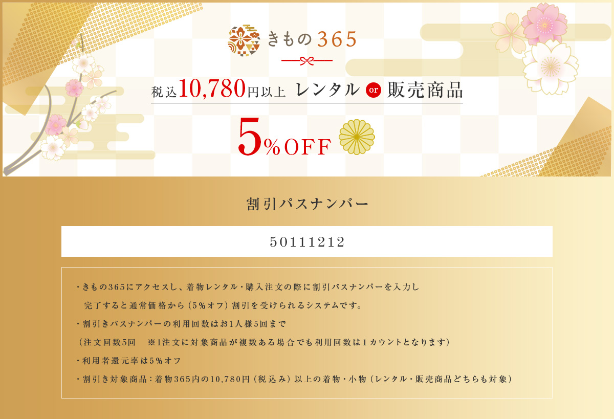 今なら5%OFFになる割引パスナンバーをご利用いただけます!